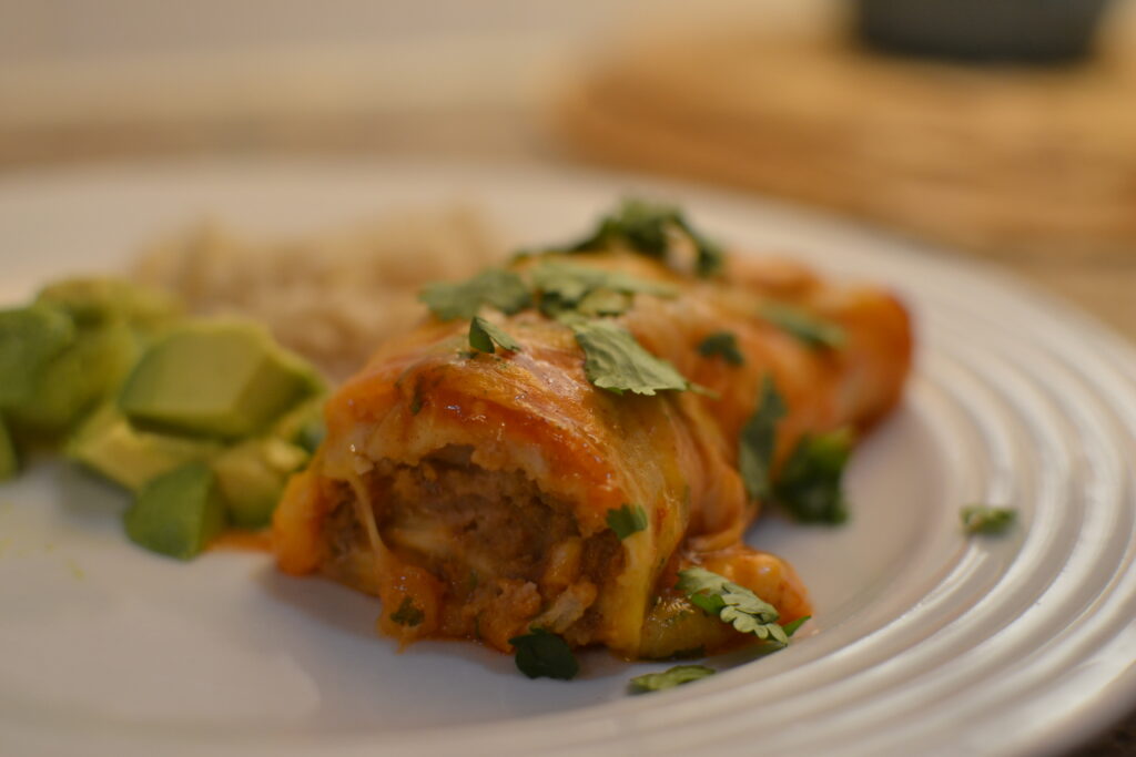 This is a classic Mexican dish made by rolling tortillas around a savory filling. Firehouse Enchiladas are flour tortillas filled with with ground beef and beans, then smothered in flavorful enchilada sauce.