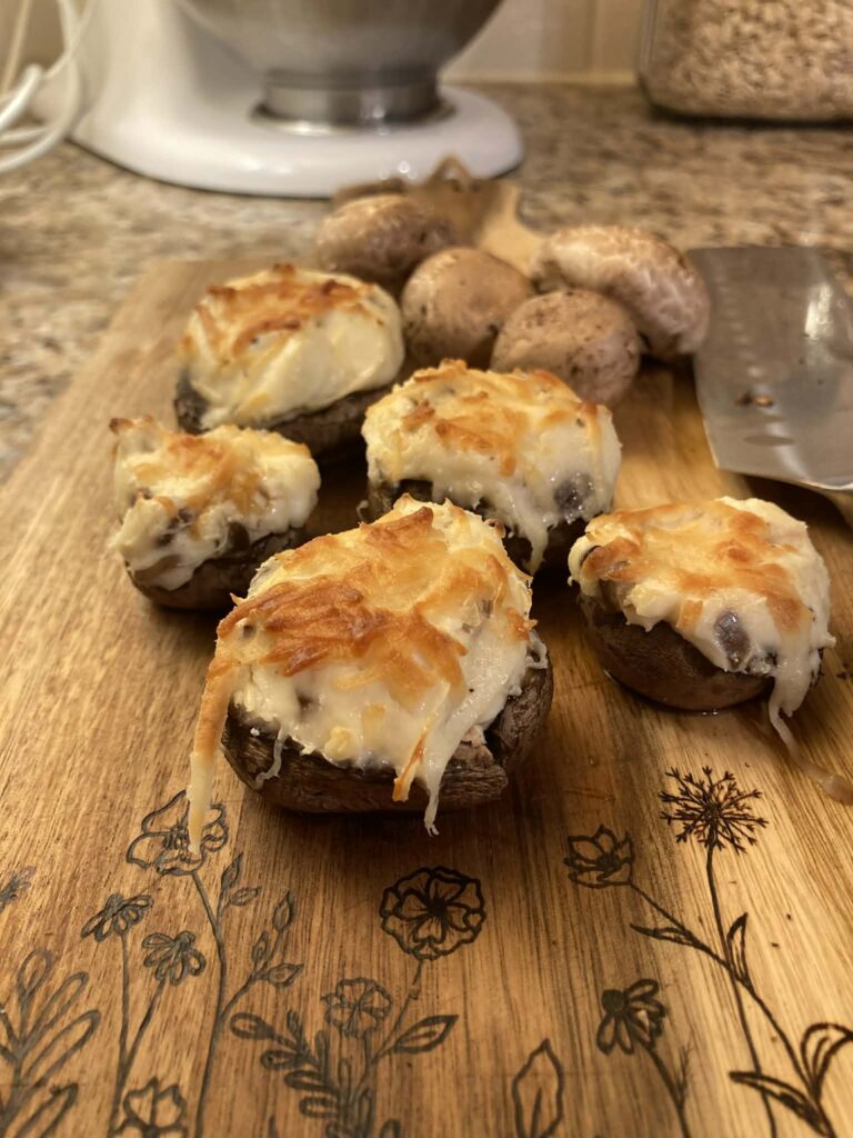Tender mushroom caps that are stuffed with creamy parmesan and cream cheese filling is a delicious, savory snack or side!