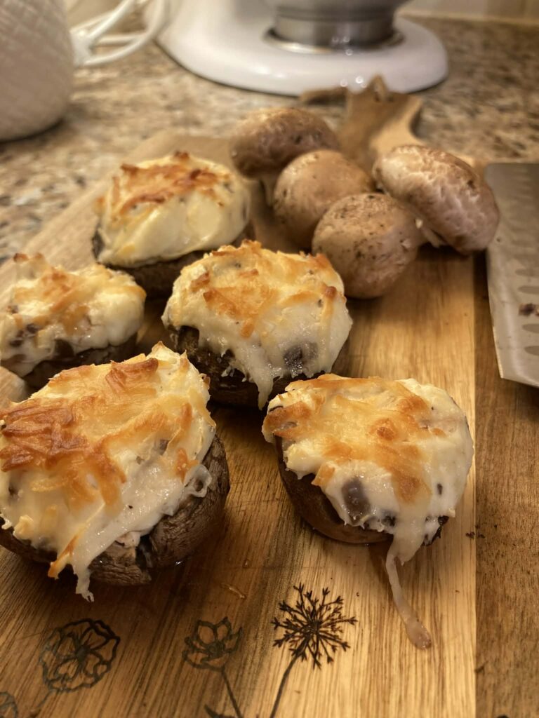 If you are a mushroom lover, this will be a real treat! These creamy, savory stuffed mushrooms are delicious and easy to prepare. If you’re not a mushroom lover, this recipe can also double as a chip dip! We love to dip tortilla chips in any extra cream cheese filling for another delicious appetizer option for those non-mushroom lovers.